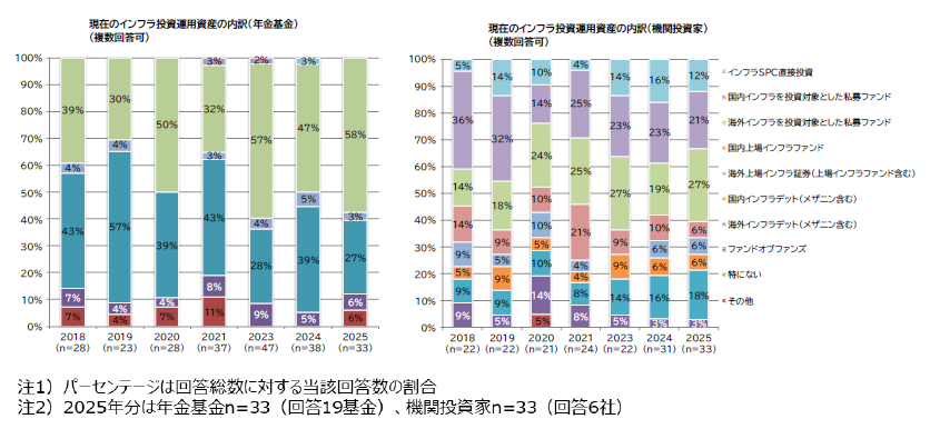 年金基金は海外インフラファンドに集中、機関投資家は国内インフラファンド等にも分散